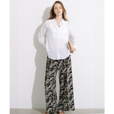 プリーツ加工とプリントデザインが印象的なイージーパンツ。