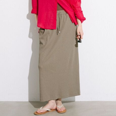 すっきりシルエットで着回し自在なカットリブIラインスカート