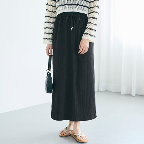 すっきりシルエットで着回し自在なカットリブIラインスカート