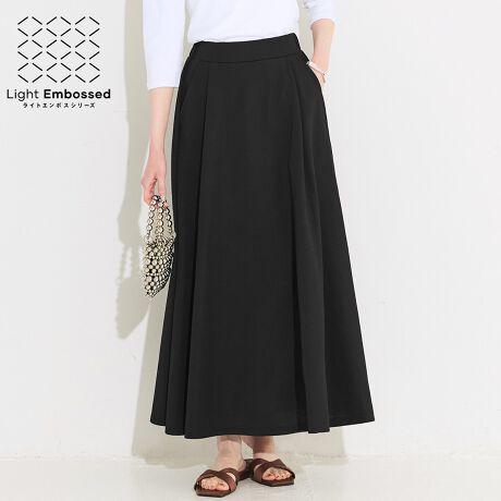 さりげない凹凸感のあるエンボス加工が魅力のフレアスカート。