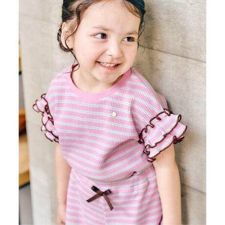 apres les cours(アプレレクール)の半袖Tシャツ「WEB限定 ワッフルフリルTシャツ」は、ナチュラルなスタイルにさりげなくデザインをプラスしたおしゃれアイテム*