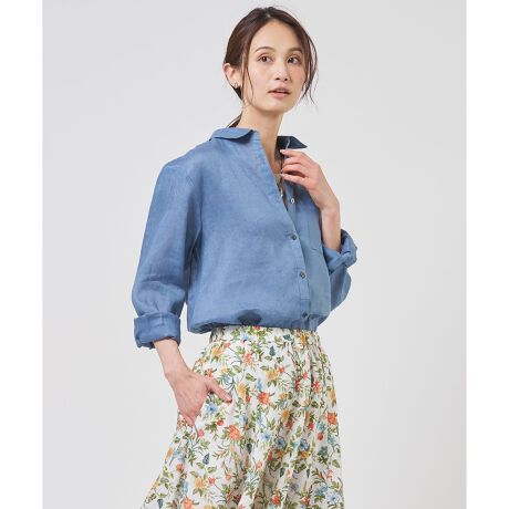 ■素材厳選されたリネンを100%使用した、こだわりのボイル素材。良質な原料を使用しているため毛羽立ちが少なく、自然で上品な光沢感があるのが特徴です。仕上げに洗いの加工を施すことで、リネン特有の硬さを和らげ、肌なじみの良い風合いに仕上げました。