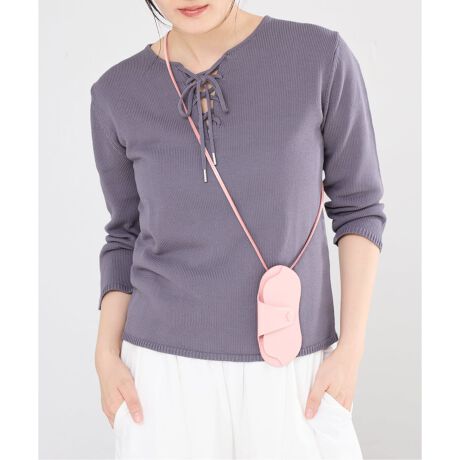 レースアップデザインがさりげないアクセントになったニットプルオーバー。