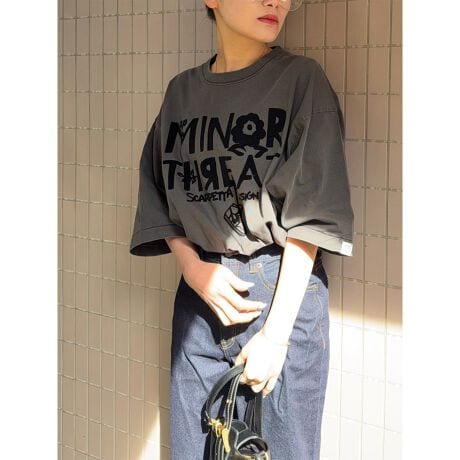 しっかりとした厚みの天竺を使用したリラックスシルエットのTシャツに仕上げました。<div>胸にはフロッキープリントのグラフィックが入った、1枚で存在感のあるデザインに仕上げました。</div><div>WHITEカラーは製品ワンウォッシュ、CHARCOALカラー製品BIO加工を入れています。</div><div>程よく抜け感を出せるのでボトムはキレイ目から、ワイドシルエット共に合わせやすいデザインです。</div><div>ジェンダーレスでお使い頂ける今年らしいサイズ感のTシャツ。</div><div>