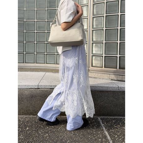 繊細さの中に程よい存在感を備えたレース素材を使用。<div>スタイリングに自然な抜け感と奥行きをプラスします。</div><div>