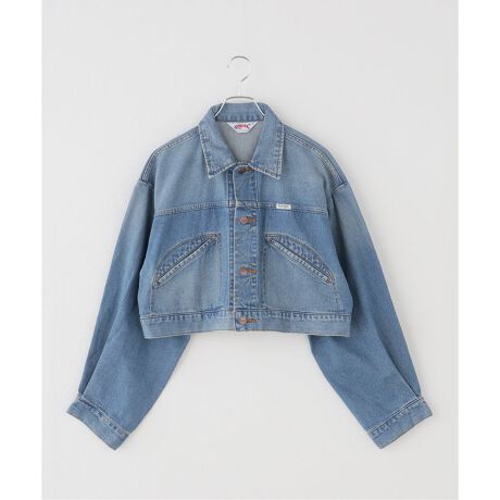 Wranglerのキッズヴィンテージジャケットをベースにしており、オーバーサイズでありながら着丈が短く、丸みのあるシルエットが特徴です。クロップド丈のカットソーやタンクトップ、ワンピースとの相性が良く、着丈が短いためボトムスのシルエットを選ばずに着用できます。