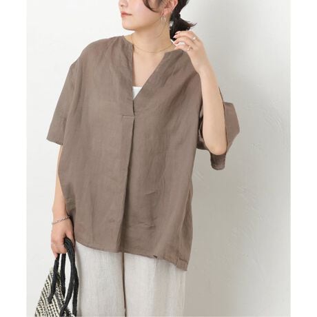 ◆ラミー素材を使用した、涼やかな着心地のVネックプルオーバー