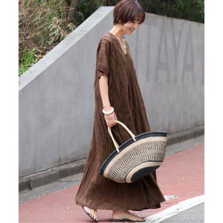 《追加予約 / 新色》コットンボイルクリンクルタックカフタンワンピース