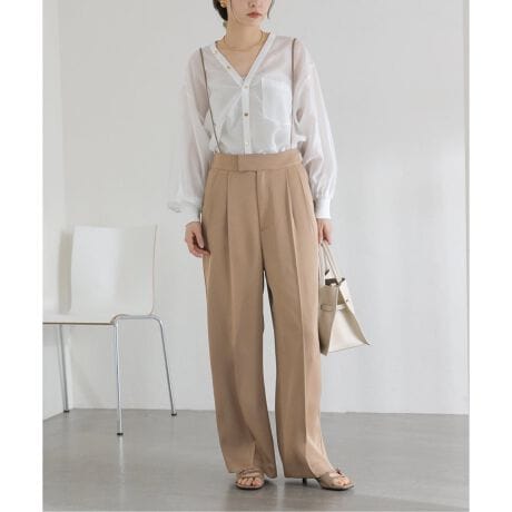 落ち感のある素材が脚のラインを美しく見せ、シンプルながら洗練された印象に仕上がります。
