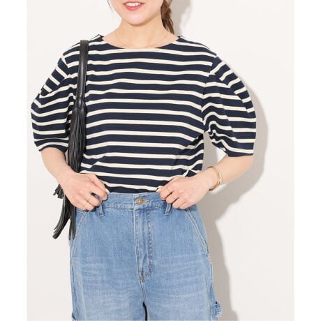 オンオフで使えるようボートネックで女性らしさをプラスし、