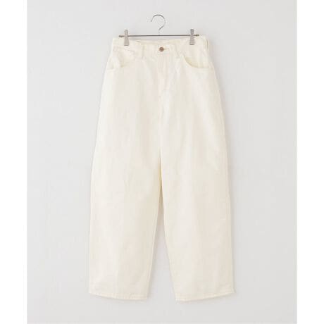 腰まわりから裾にかけて緩やかに流れるようなカーブ形状のバレルスタイルです。綾目を逆方向に織り変えることでデニム特有のねじれを解消し、破れに強くフラットで柔らかな着心地が特徴です。ホワイト(010)カラーは、やや軽めでドライな肌触りです。