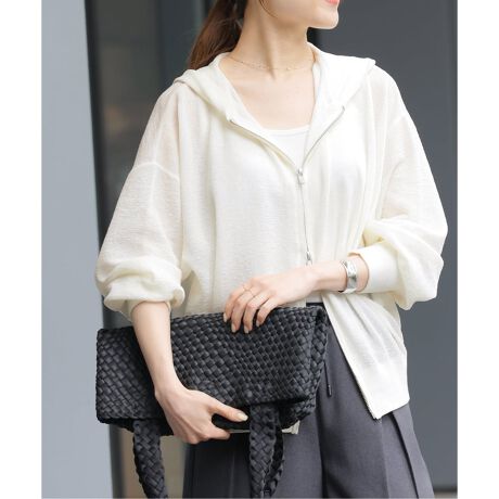 さらっとした程よいシアー感のニットフーディ。