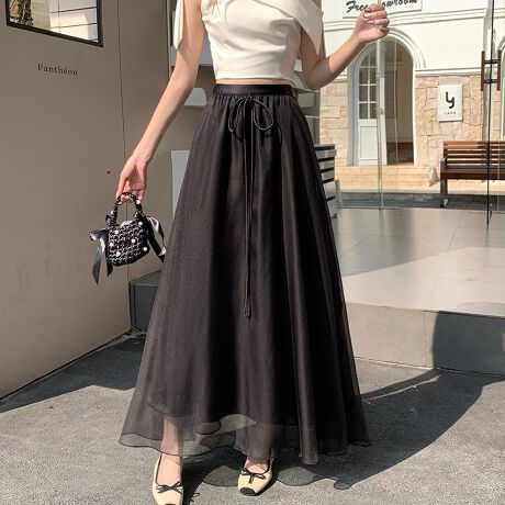 透け感のある表地が軽やかに揺れるロングスカートです。