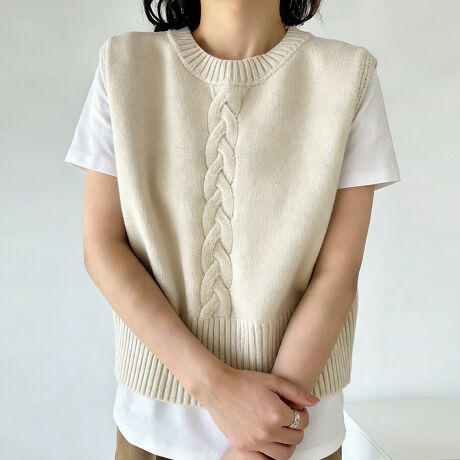 ノースリーブのデザインで、シャツやカットソーの上に重ねるだけで立体感のあるスタイルが完成します。