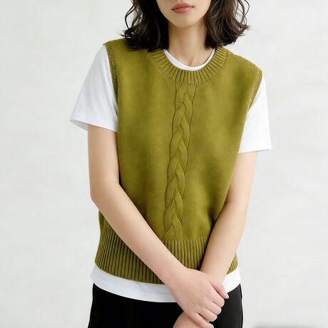 バックボタン×ケーブル編みニットベスト