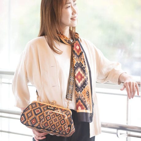 【BARCOS/バルコス】がま口財布&スカーフ付きがま口バッグ(幾何学模様)