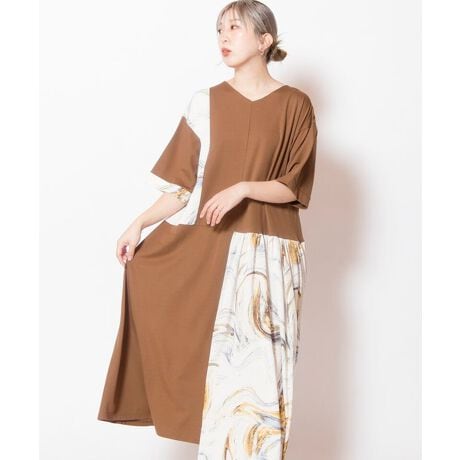 初夏へ向けて活躍するTシャツワンピースに、滲むようなマーブルプリントをドッキング。
