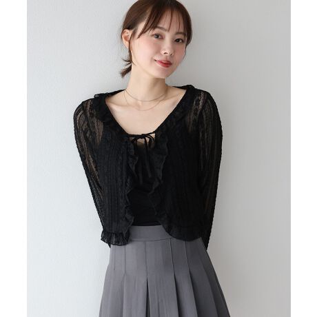 大人のガーリーな魅力のフリルレースシアーカーディガン