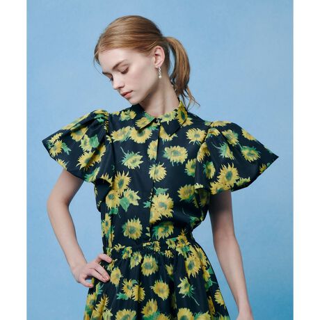 WEB 一部店舗限定【LOULOU WILLOUGHBY】サンフラワープリントバルーンスリーブシャ