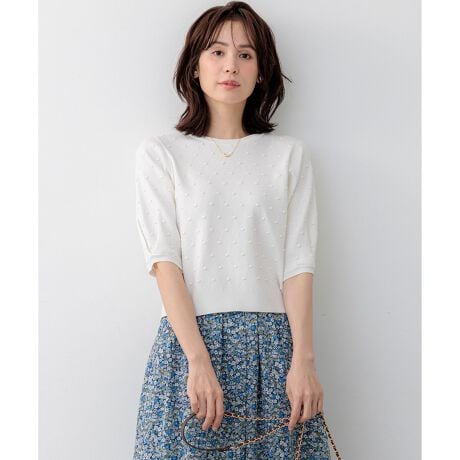 組曲オリジナル編み柄でスタイリングが華やぐ5分袖ニット