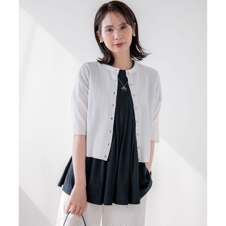上品な素材感とコンパクトシルエットがモダンな5分袖カーディガン