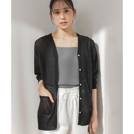 【スタッフコメント】▼身長158cm|着用サイズM (通常着用サイズM)春のスタイリングにはもちろん、夏の冷房対策や、日差しのケアにもおすすめしたいさらっと羽織れる万能カーディガンです。滑らかで上品な素材感なのでオフィススタイルにも大活躍間違いなしです。