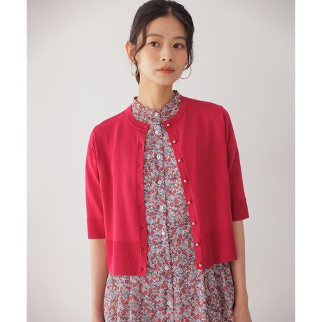 上品な素材感とコンパクトシルエットがモダンな5分袖カーディガン