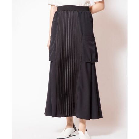 プリーツ切替が揺れを生み、抑えたフレアと落ち感で甘さを削いだ仕上がりに。