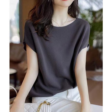 夏の万能バットスリーブニットトップス。