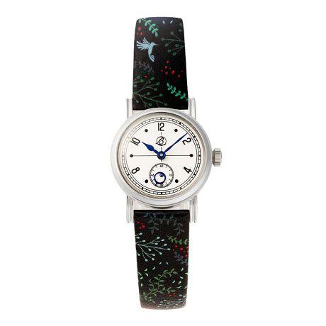 しっとりとした手触りのホーウィン(HORWEEN)レザーに、シックなカラートーンのボタニカル柄をプリントしたアンティーク調腕時計。