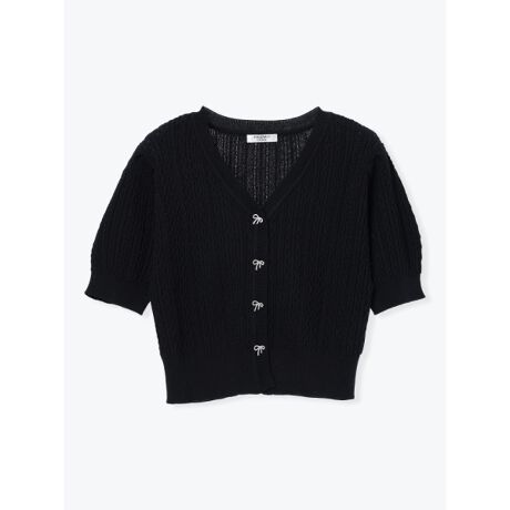 ケーブルリボンボタン半袖ニットカーディガン