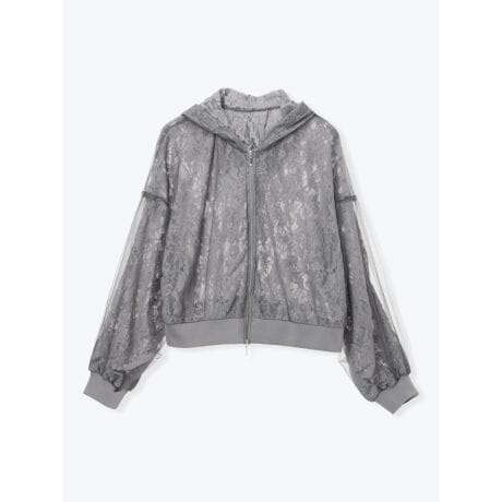 シアーレース フード付きZIPパーカー
