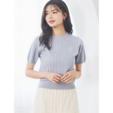 [型番:26550736275]細かなベビーケーブル編みが上品な印象の半袖ニット。さりげなくラメを織り込んだ素材が、スタイリングに華やかさをプラスします。すっきりとしたシルエットで、パンツにもスカートにも合わせやすい一枚です。デイリーコーデはもちろん、きれいめスタイルにも取り入れやすいアイテムです。モデル(サックス着用)身長:165cmMサイズ着用モデル(アイボリー着用)身長:165cmMサイズ着用