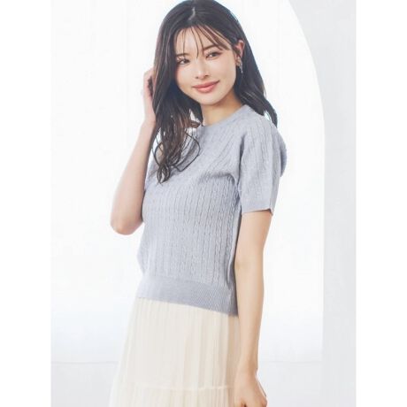 細かなベビーケーブル編みが上品な印象の半袖ニット。