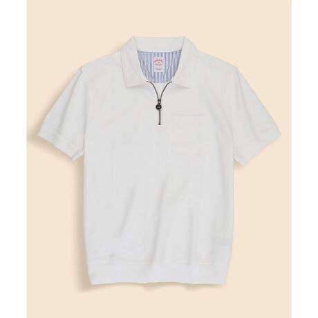 伸縮性のあるジャージー生地を使用した半袖ハーフジップポロシャツ