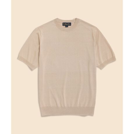 コットンの柔らかな肌触りと、シルクのような優美な光沢を併せ持つハイゲージニット。密度が高く編み目の揃ったクリアな表面感により、素材の上質さが更に際立ちます。半袖でも大人らしさを損なわない、ドレッシーな雰囲気を持った一枚です。ジャケットのインナーとして着用するのもお薦めです。