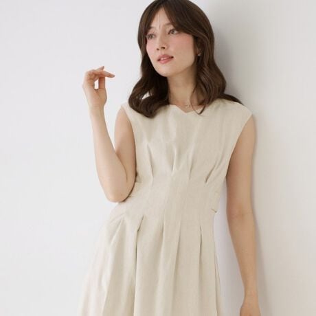 麻混素材のフレアーノースリーブワンピース。