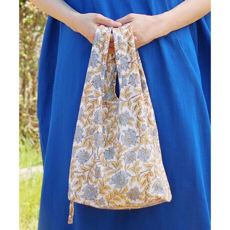 心癒される優しい花柄がフェミニンな印象のブロックプリントエコバッグ。