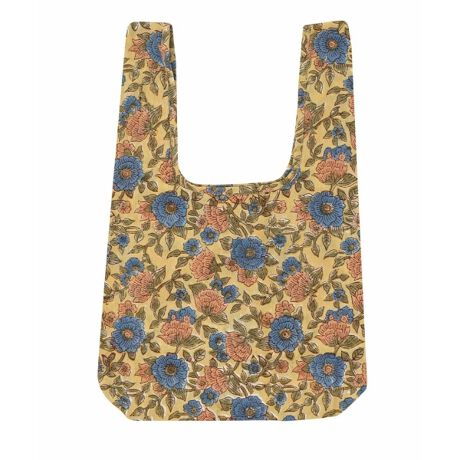 心癒される優しい花柄がフェミニンな印象のブロックプリントエコバッグ。