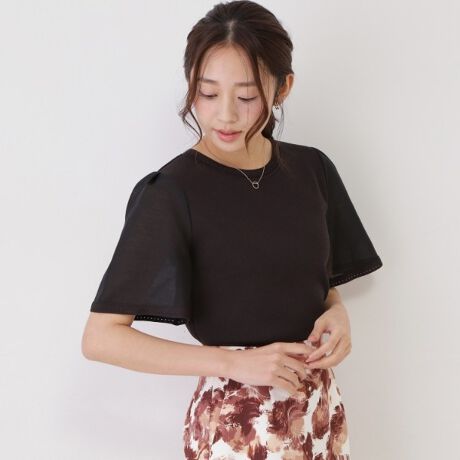 お袖にシアー感のある同色生地をドッキングしたニット。