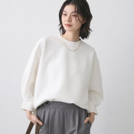 きれいめパンツと合わせた上品な通勤スタイルから、ワイドパンツやスカートとのカジュアルコーデまで幅広く対応。
