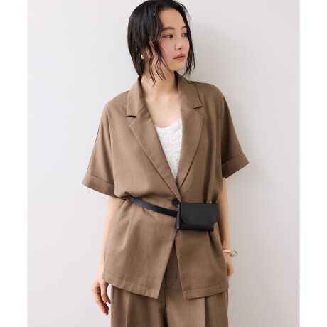 シングルでスッキリ見えるジャケットです。ドルマンしシルエットなので腕周りもゆとりがあり涼しくきていただけてます。