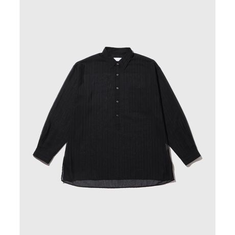 ・プルオーバー仕様で、前身側の肩部分にタックを取ってウエストインしたときに膨らみの出るシルエットにしています。アウトしたときはドレープを楽しめるのもうれしいポイント