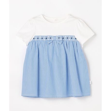 ■デザインTシャツとリボンビスチェをレイヤードしたようなドッキングチュニックです。