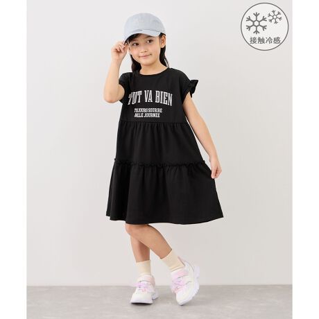 ・ティアードとフリルのフェミニンな印象に、フロントのカジュアルなロゴがアクセント。