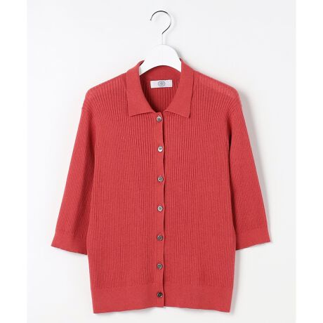 ■デザインリブベースで編み立てた、クラシカルなポロニットカーディガン。縦のラインを強調したリブ編みがすっきりとした印象の1着です。程よいゆとりを持たせたシルエットで、体のラインを拾いすぎないのが嬉しいポイントです。釦を閉じてプルオーバーとして着ればきちんと感のある装いに、前を開けてカーディガンとして羽織ればリラックスした雰囲気に、着回しの効くアイテムです。パンツにもスカートにも合わせやすい丈感で、清涼感あふれる春夏の装いを楽しめます。カラーは、華やかな存在感のあるルビーレッド(#010)、ナチュラルで温かみのあるモカ(#030)、爽やかで知的な印象のサックスブルー(#073)、シーンレスに活躍するネイビー(#075)の4色展開です。