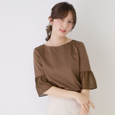 袖口に涼しげなシアーボーダーを組み合わせた異素材ドッキングのトップス。