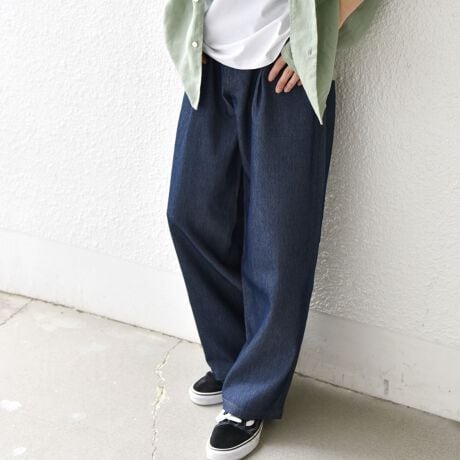 デニムライクな表情が◎暑い季節に穿きやすいメッシュデニム使用のワイドパンツ