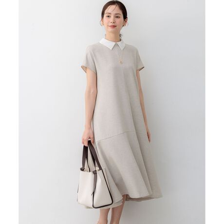 ■デザイン・取り外し可能な白襟付き2WAYワンピースです。・襟を取り外してノーカラーワンピースとしても着用頂けます。・ローウエストで切り替えたフレアーシルエットは程よい分量感でフェミニンな印象を与えます。・優しく肩をカバーするフレンチスリーブで腕周りをスッキリと見せてくれます。・後ファスナーあきで着脱も楽です。・裏無し仕立て、ペチコート付きの軽い仕立てにしました。