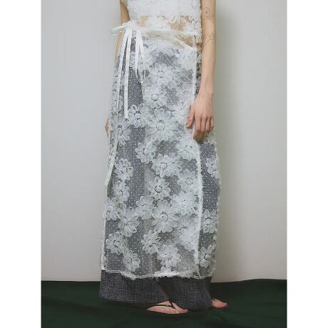 立体感のあるフラワー刺繍が印象的なチュールラップスカート。